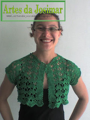 Adorei esse bolero verde, e ficou perfeito com o vestido preto,parabéns.
